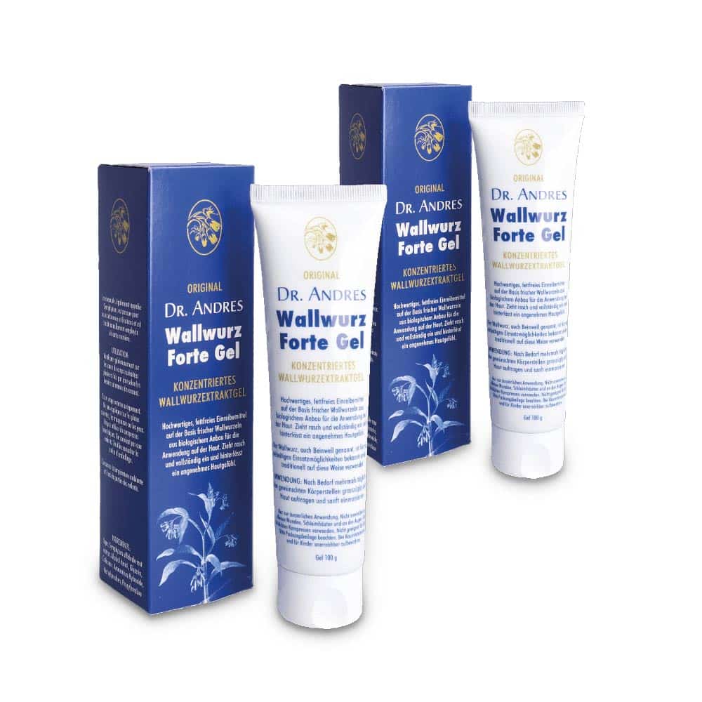 Dr. Andres Wallwurz Forte Gel ist ein hochwertiges, fettfreies Einreibemittel auf der Basis frischer Wallwurzeln aus biologischem Anbau für die Anwendung auf der Haut. Zieht rasch und vollständig ein und hiterlässt ein angenehmes Hautgefühl. Der Wallwurz, auch Beinwell genannt, ist für seine vielseitigen Einsatzmöglichkeiten bekannt und wird traditionell auf diese Weise verwendet.